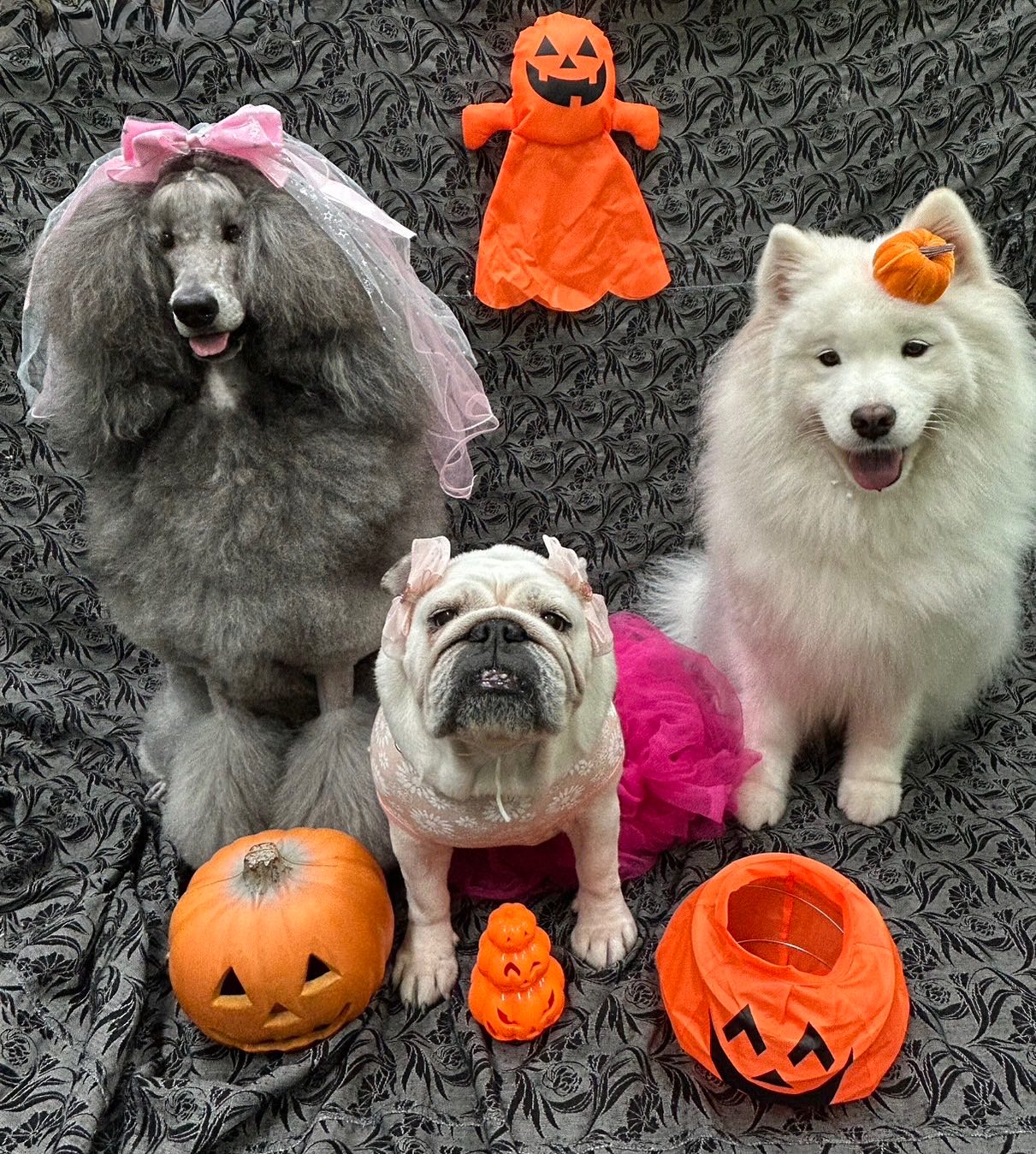 #ZOO四谷 より 👻ハッピーハロウィン🎃 可愛い女子team💓📸 #ZOO #ZOO動物プロ #アモーレ #ブルドッグ #レモン 🍋 #サモエド #グレース #スタンダードプードル #ハロウィン 🎃