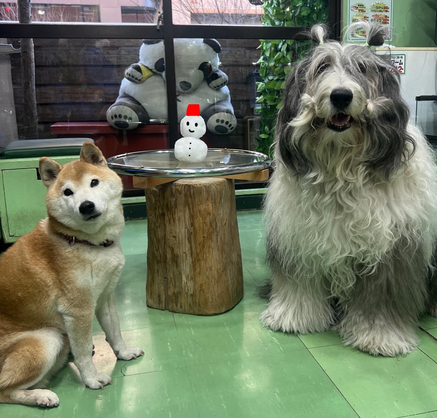 本日の #ZOO新大久保 🐶 カモン&ダンディも雪に大はしゃぎ🕺✨ スタッフと一緒に沢山遊びました🐕 #ZOO #サモエド #カモン #オールドイングリッシュシープドッグ #ダンディ