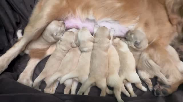 ムックっ子🐶Vlog⑤ 綺麗に整列ミルクタイム🍼 あっという間に体重も1000グラム突入🙌🏻✨ 目も徐々に開いてきました👀✨ #ZOO #ZOO恵比寿 #ゴールデンレトリバー #ムック #子犬